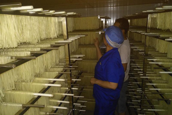 U乐国际空气能热泵烘干米粉,采用搭建烘干房的形式来烘烤。利用空气能热泵制造热风,热风吹入烘干房内来达到烘干的目的。空气能热泵本身制热不受天气限制,有空气、有电能就能制热,一年365天都可以有效实现烘干。而且由于米粉放置在烘干房内,与外界形成隔离,污染物都被阻挡在烘干房内,烘干的成品纯净度非常高。自从广西家柳食品科技有限公司选用了U乐国际空气能热泵烘干机来烘干米粉,机组智能控制烘干温湿度,实现了快速稳定的烘干,米粉干爽白净。相比以前不仅运行费用降低了,而且烘干出来的米粉品相非常好,产品在全国各大超市畅销,用户感到十分满意!